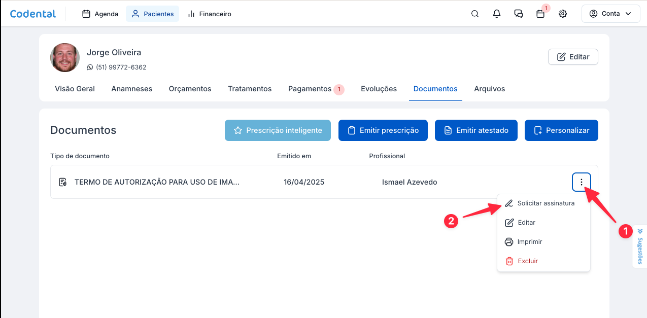 A funcionalidade de documentos personalizados com assinatura digital no Codental é uma solução prática para formalizar e organizar a documentação da clínica. Além de economizar tempo, garante a validade jurídica dos registros.