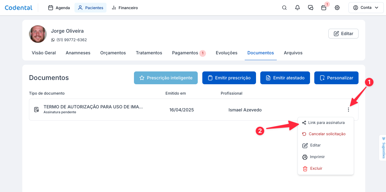 Além disso, caso o paciente perca o link de assinatura, é possível gerar um novo link facilmente.