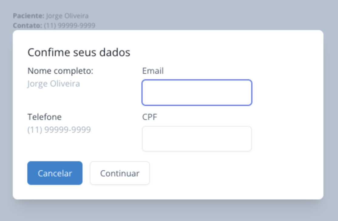 O sistema vai pedir que ele confirme o CPF, e-mail e demais dados necessários.