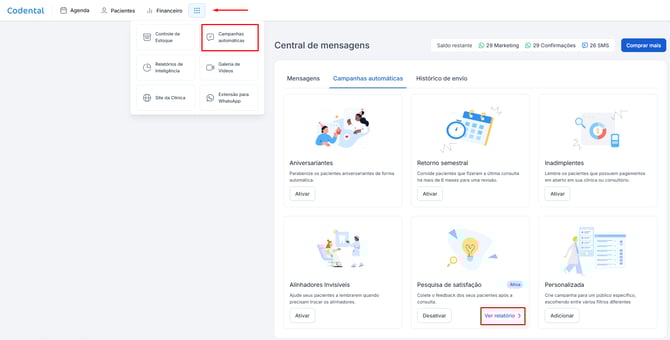 Lembre-se de manter o status das consultas finalizado e o saldo de mensagens em dia para garantir que a pesquisa chegue a todos os pacientes, ajudando sua clínica a evoluir continuamente.