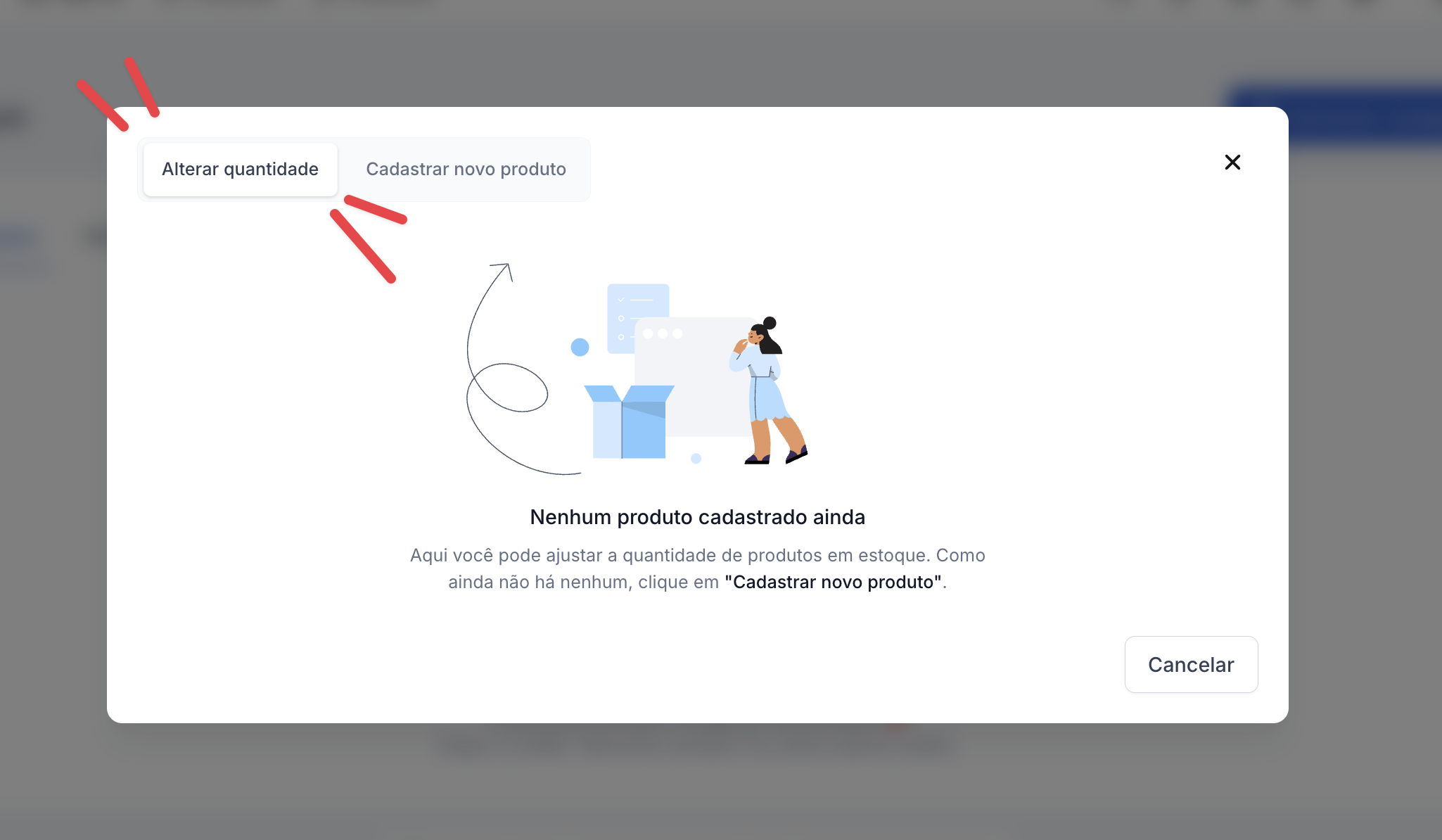 3. Escolha entre Alterar quantidade ou Cadastrar novo produto