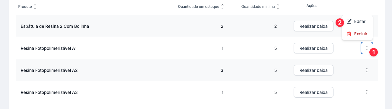 Como Editar a Quantidade Mínima ou Excluir um Produto do Estoque