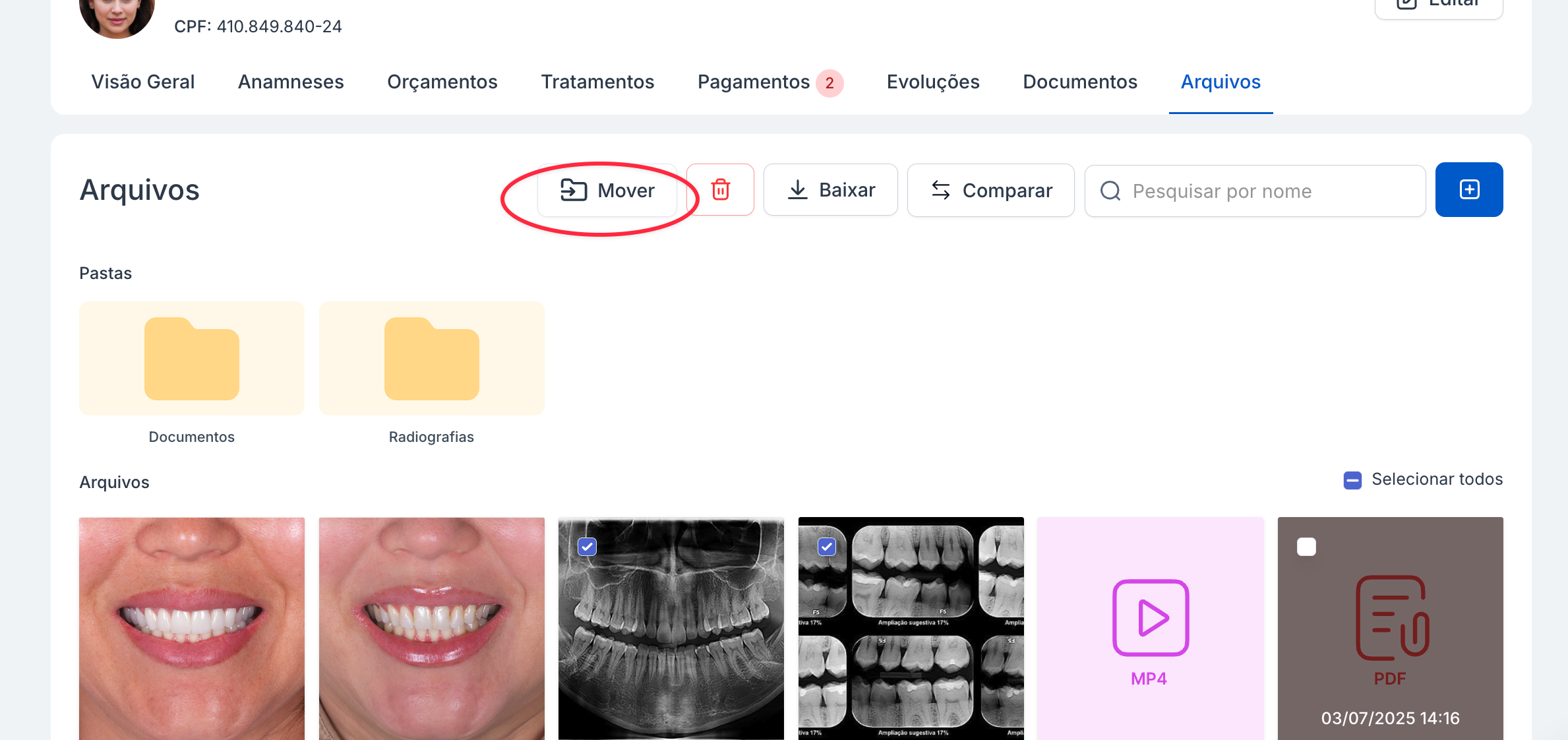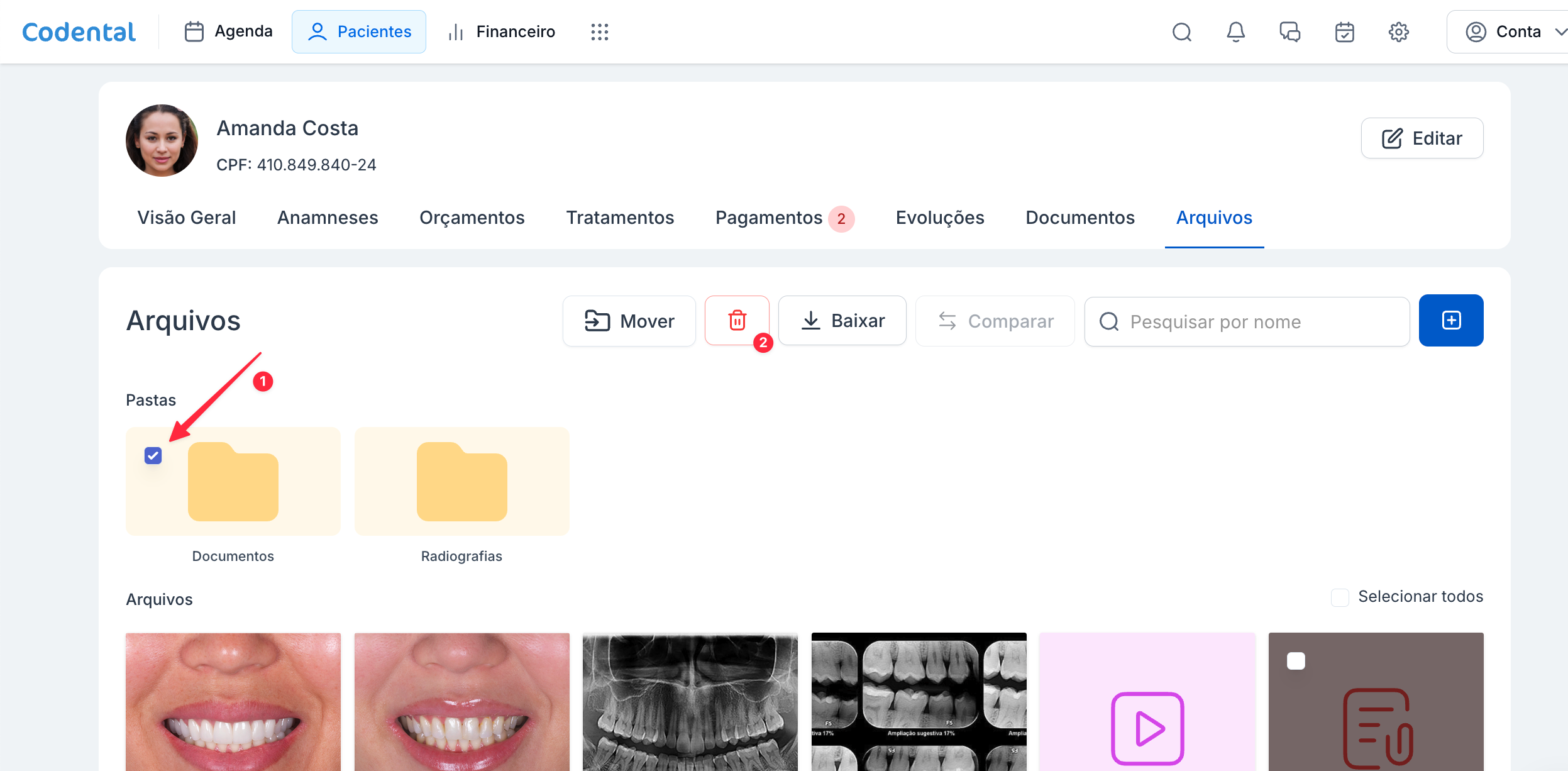 Organize os arquivos do paciente criando pastas no Codental. Aprenda como criar, mover e excluir conteúdos facilmente