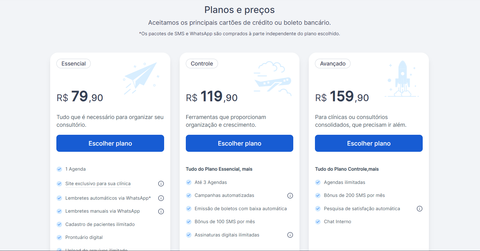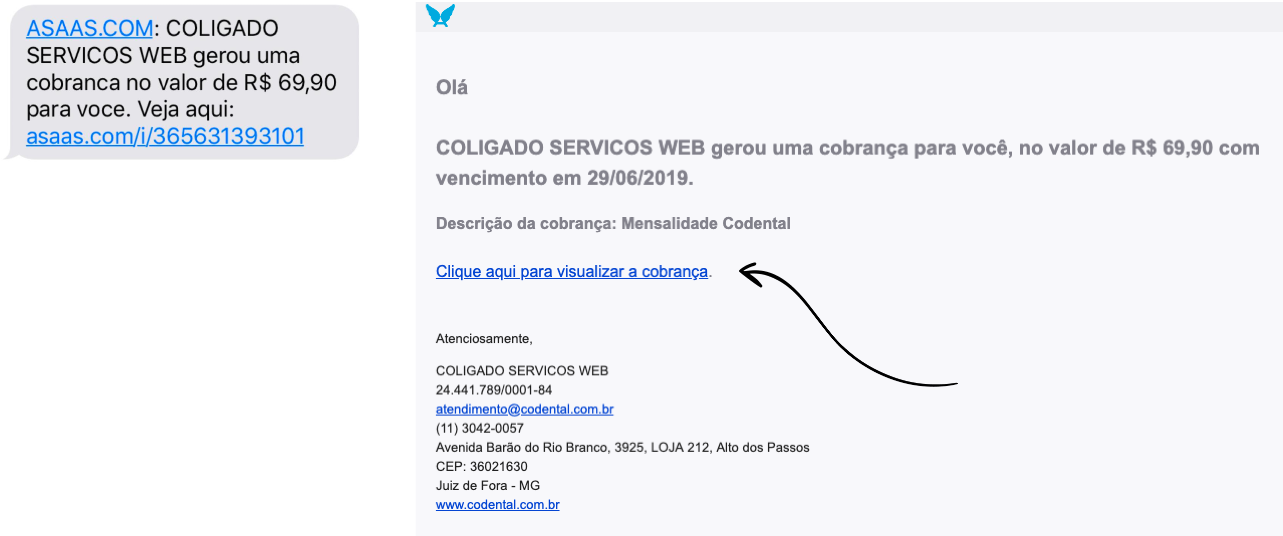 Você receberá a fatura no e-mail da clínica sempre 10 dias antes do vencimento e também através de um SMS.