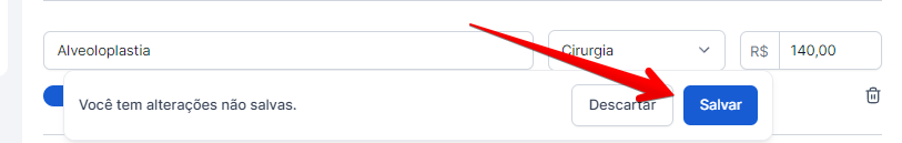 Após personalizar os procedimentos ou criar novas tabelas, clique em Salvar na parte inferior da tela para garantir que todas as mudanças sejam aplicadas.