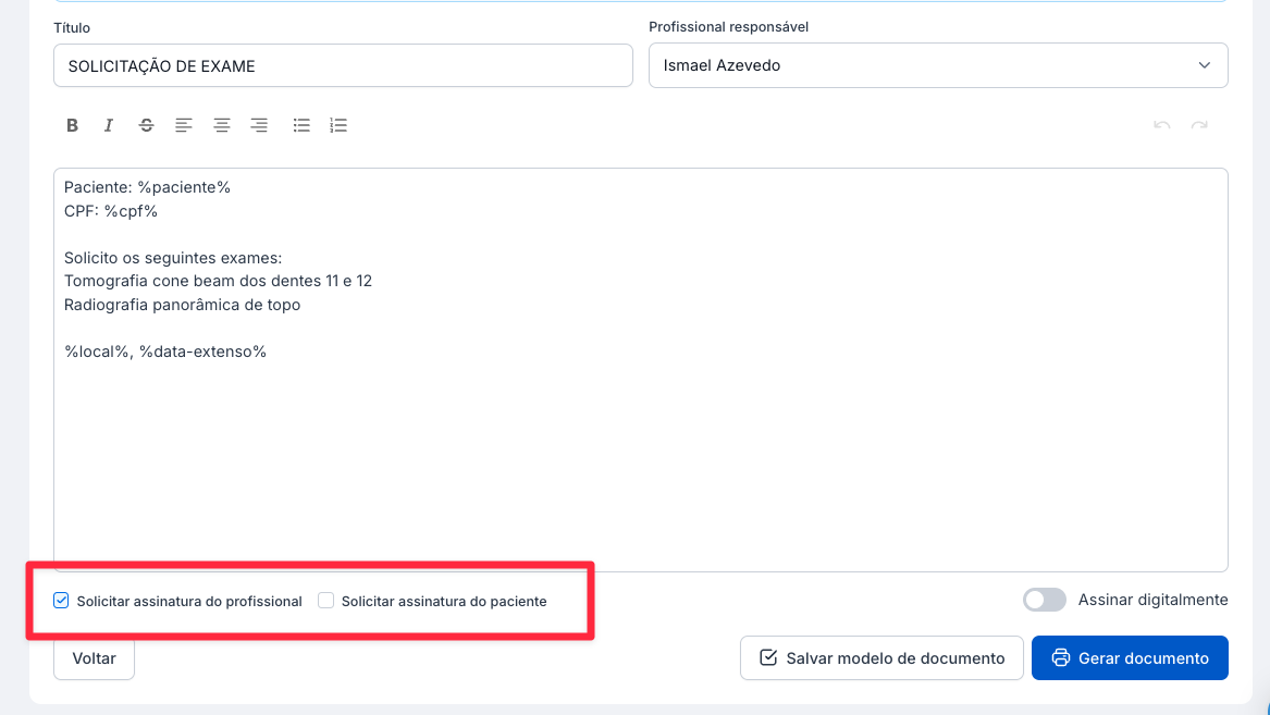 As vezes, você precisa entregar um documento específico para o seu paciente — como um termo de consentimento, pedido de exame, orientações pós-operatórias, plano de tratamento personalizado, ou até mesmo um aditivo contratual.