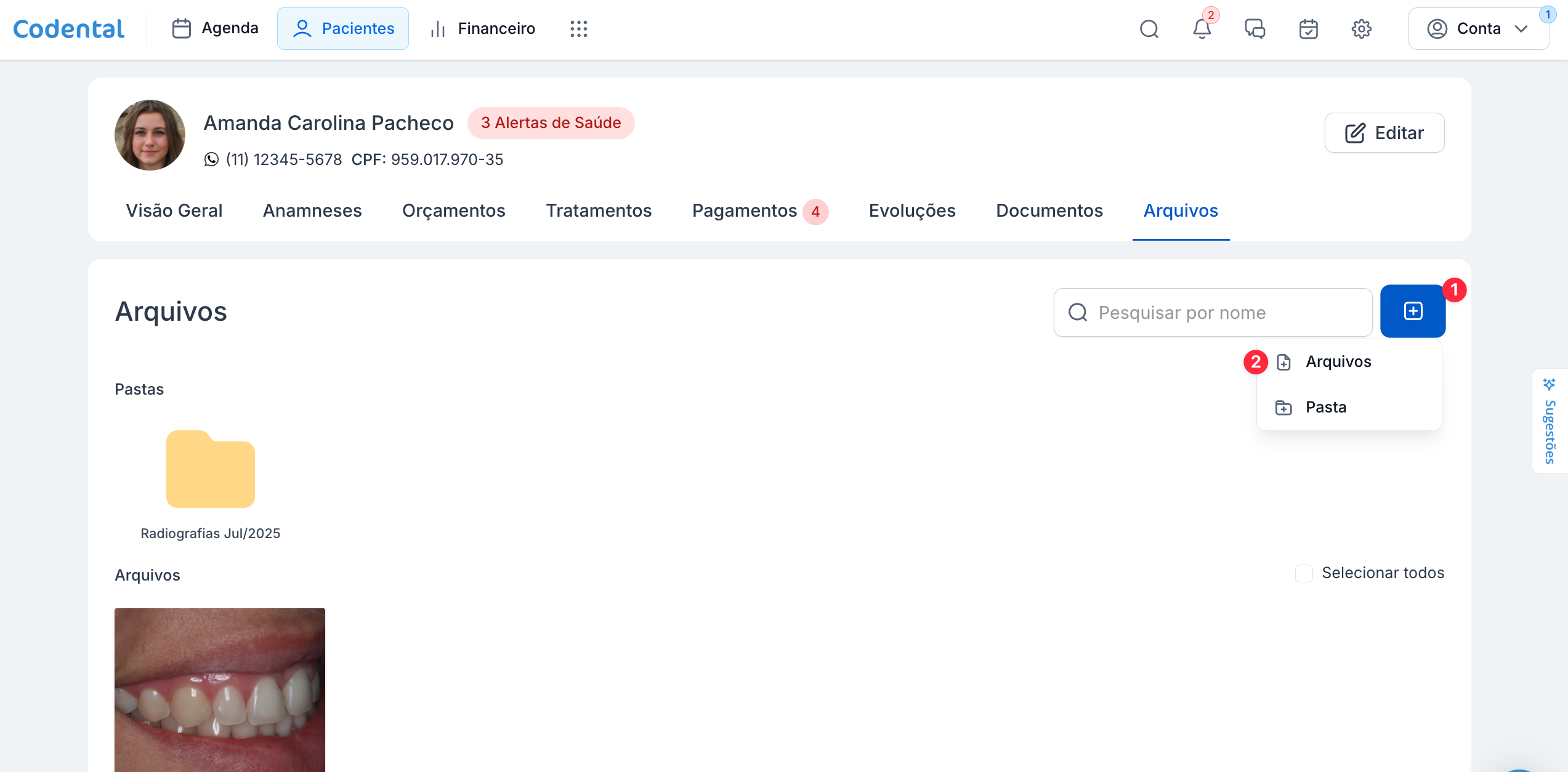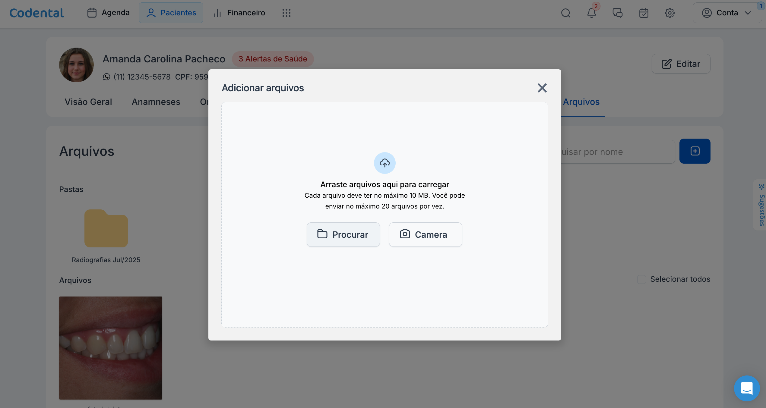 Aprenda como adicionar fotos, exames, vídeos e documentos digitalizados à ficha do paciente. Organize tudo no Codental com facilidade.