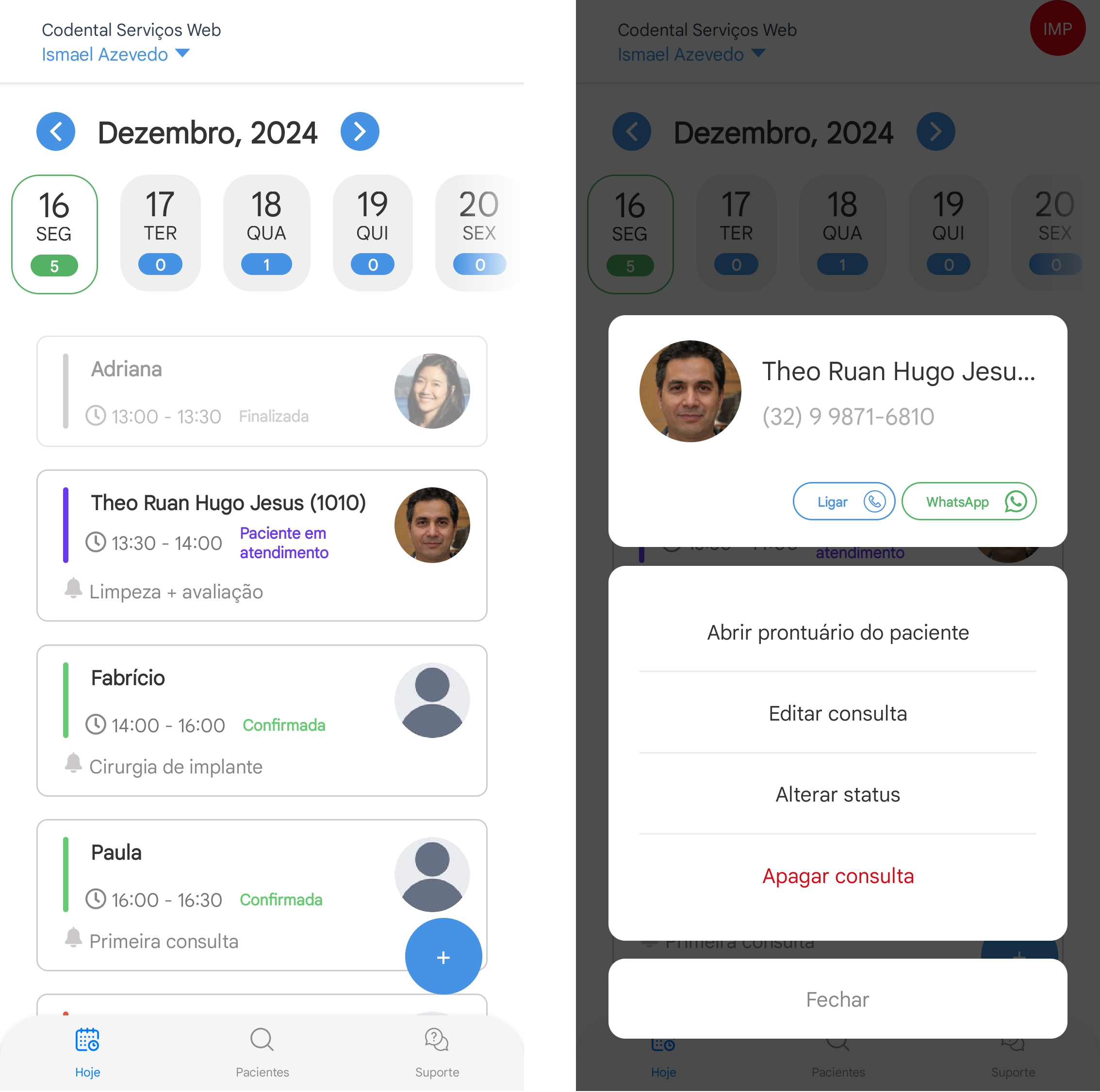 Além de visualizar e gerenciar a agenda, o app Codental oferece recursos adicionais para o dia a dia odontológico: