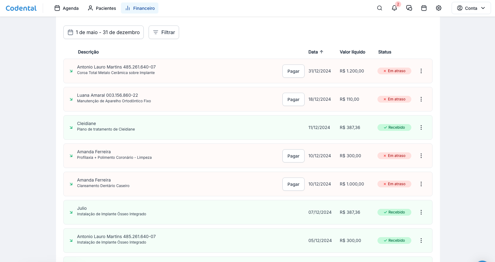 Isso facilita muito o acompanhamento e garante que você tenha clareza sobre o fluxo financeiro da sua clínica.