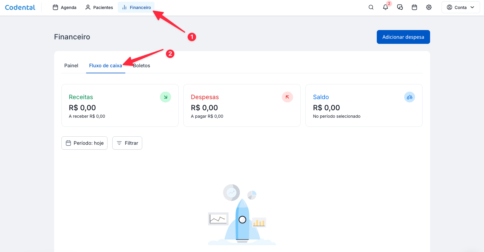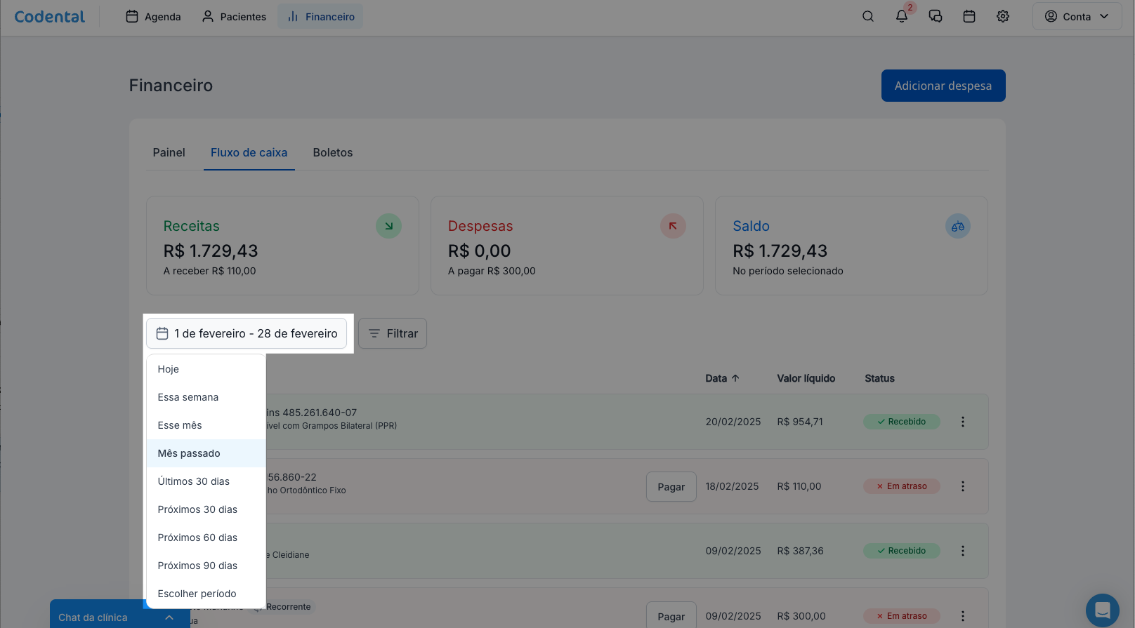 Quando abrimos o Fluxo de Caixa no Codental, por padrão, o sistema exibe apenas o dia atual. Mas, e se quisermos visualizar informações específicas ou de períodos diferentes? Neste artigo, ensinaremos a usar os filtros para ver exatamente o que você precisa, facilitando sua rotina financeira.