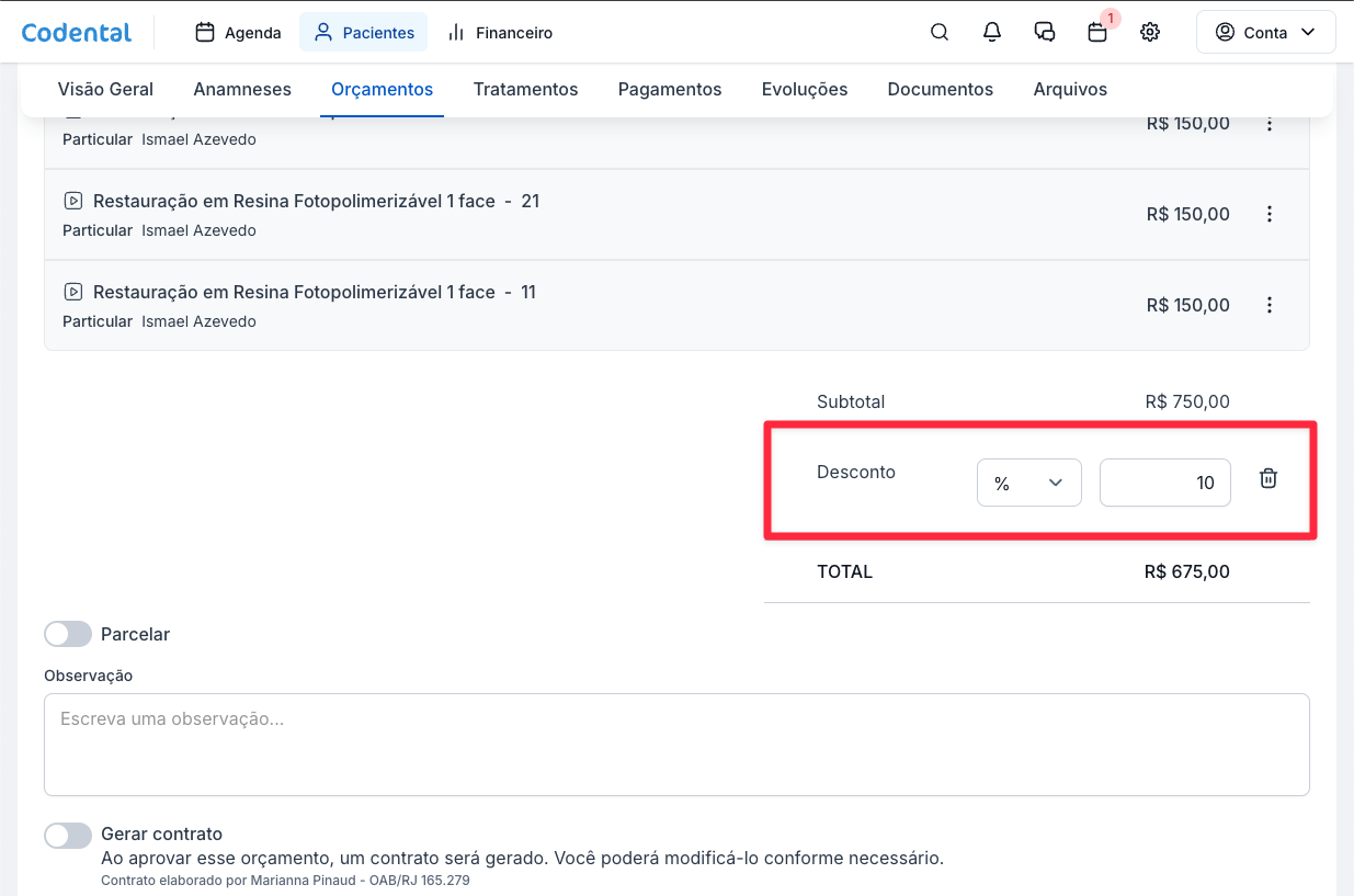 Como Aplicar um Desconto para Meu Paciente no Codental