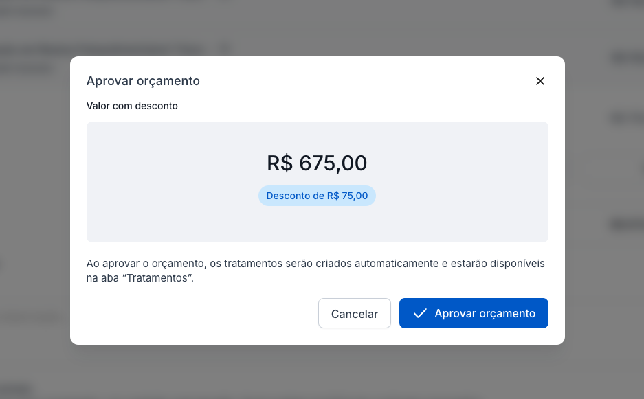 Aprove o orçamento para que os débitos sejam gerados automaticamente com o desconto proporcional já aplicado.