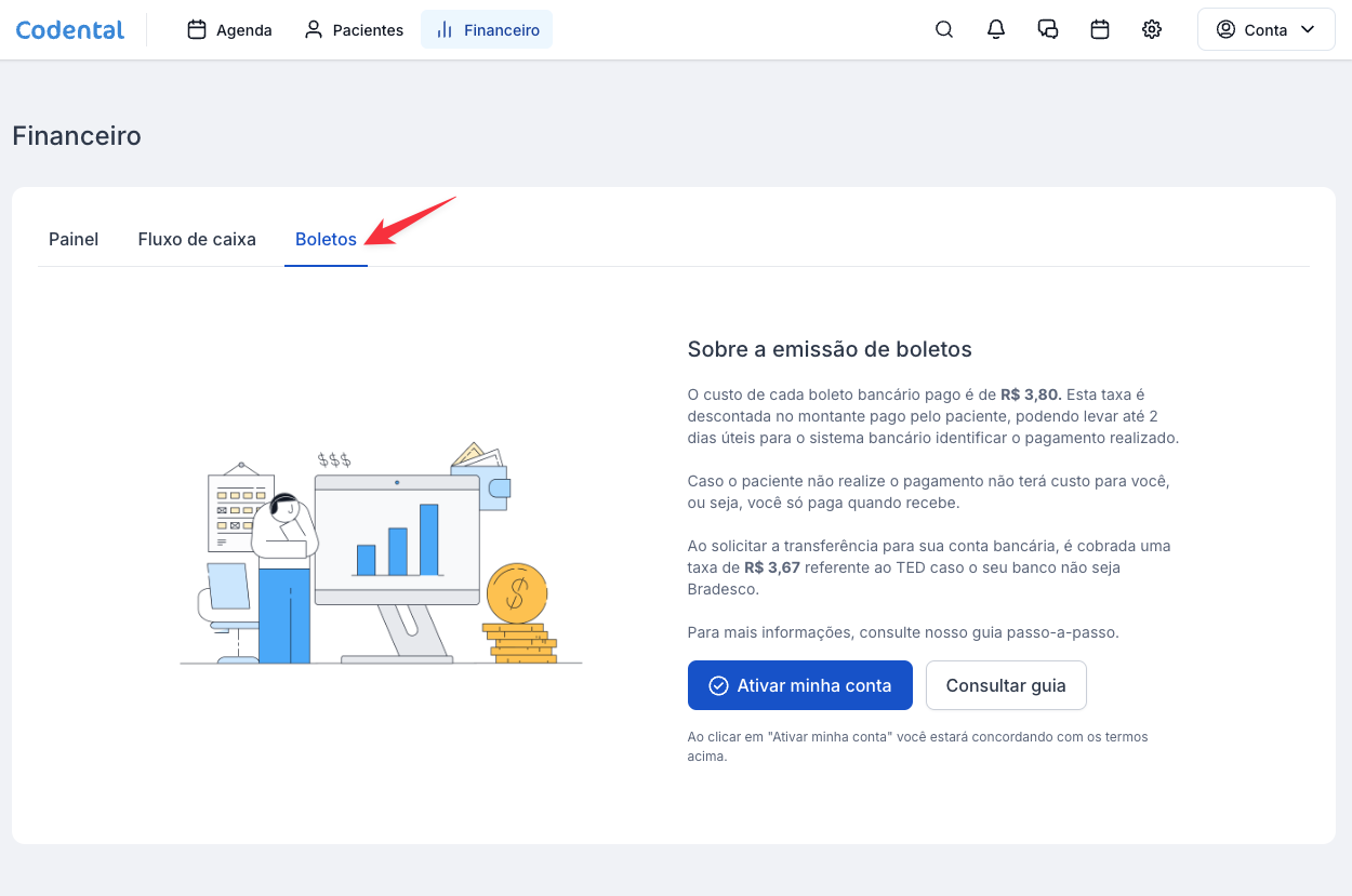 Aprenda como habilitar a ferramenta de emissão de boletos no Codental e configurar sua conta bancária para receber os pagamentos