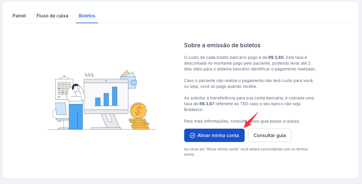 Agora que a ferramenta de emissão está habilitada e sua conta bancária configurada, você já pode começar a emitir boletos para seus pacientes.