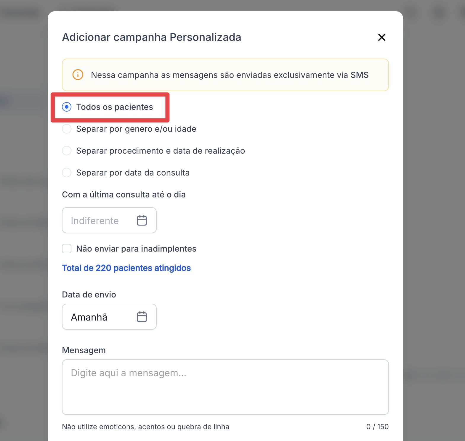 Se deseja enviar uma mensagem para todos os seus pacientes: