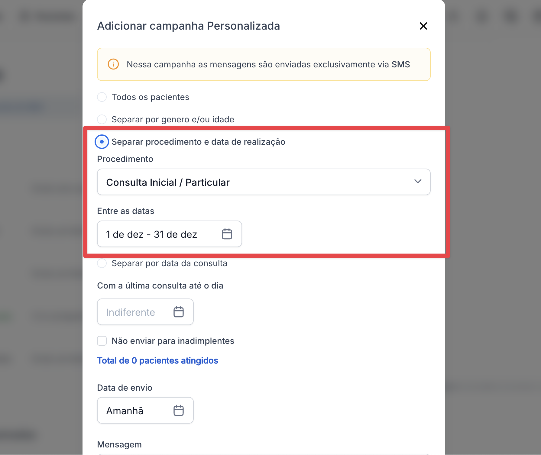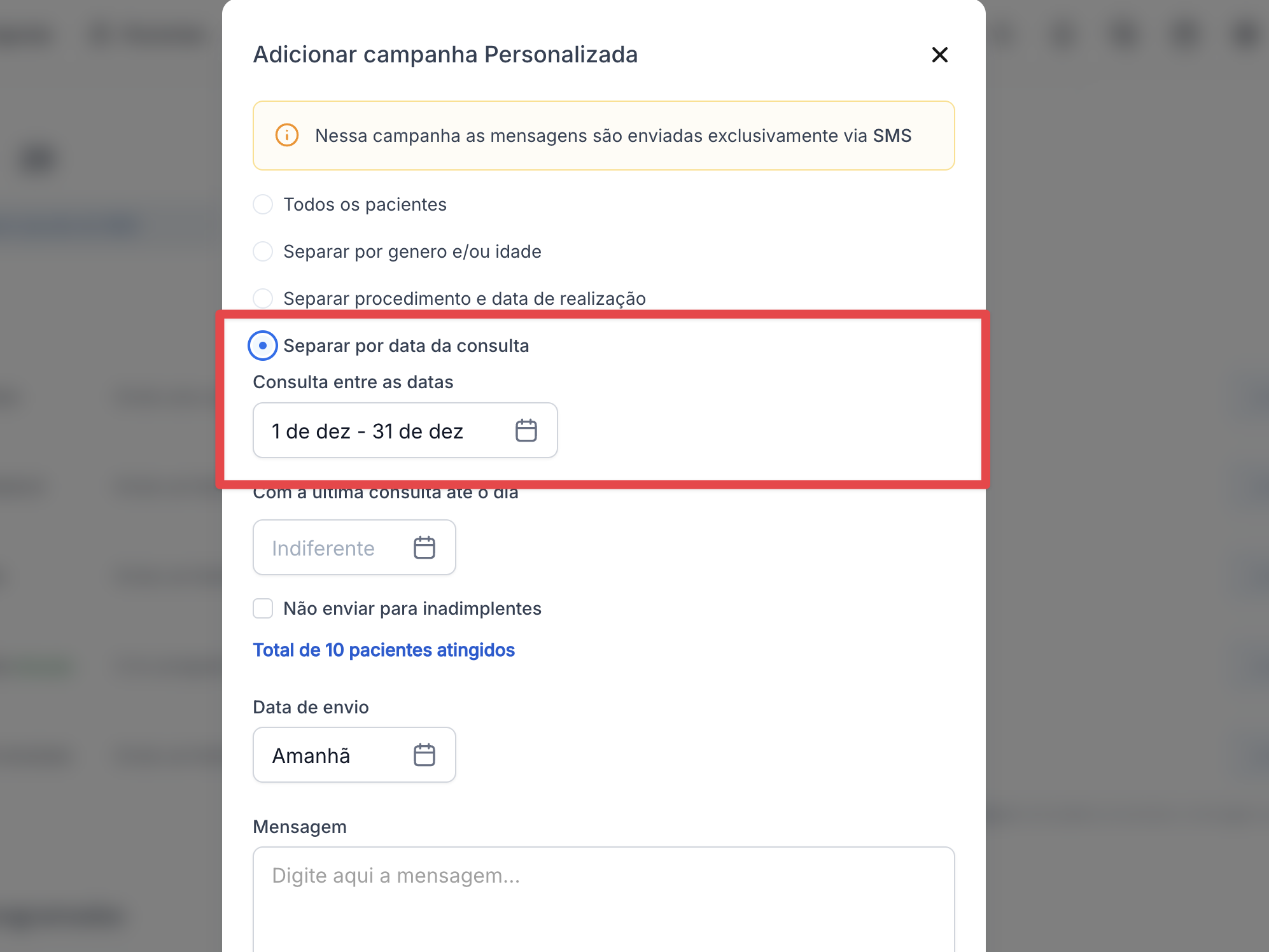 Exclusão: Pacientes inadimplentes não receberão a mensagem.