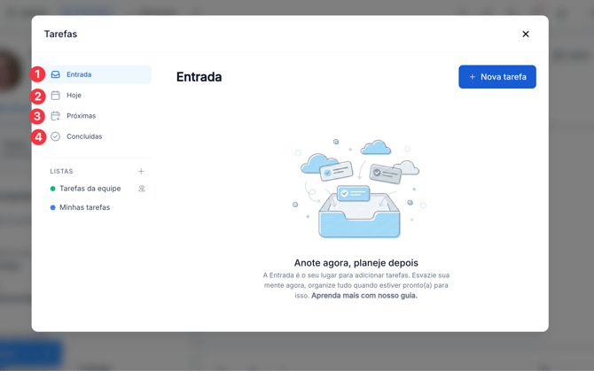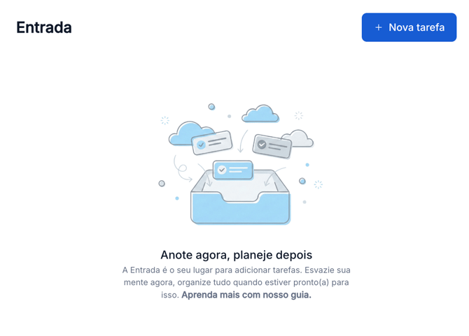 A aba Entrada funciona como um espaço para tirar as tarefas da cabeça e organizar depois.