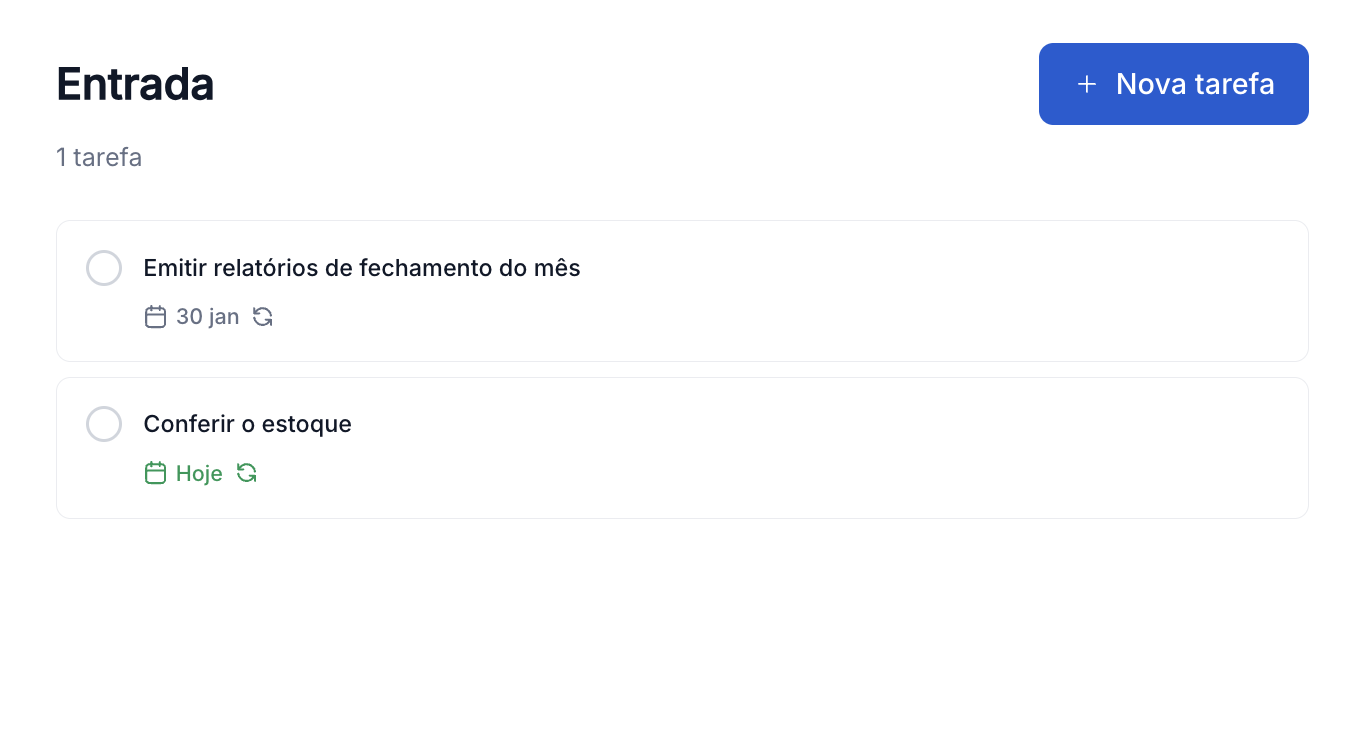 Você tem total liberdade para criar tarefas simples ou recorrentes, conforme a rotina da sua clínica.