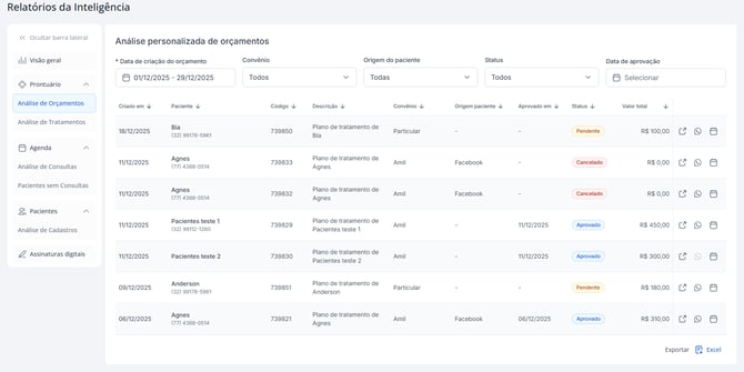 O relatório de Análise de Orçamento ajuda a acompanhar o comportamento dos pacientes após a avaliação.